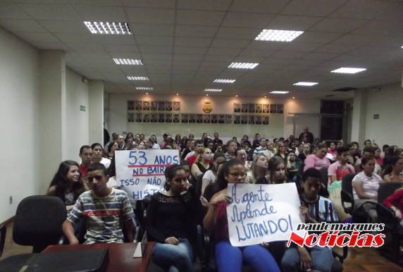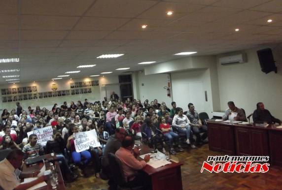 Ordinária da Câmara de Vereadores, o grupo lotou a assistência da casa legislativa, para acompanhar os pronunciamentos da diretora da escola, a professora Nilse Perim, e