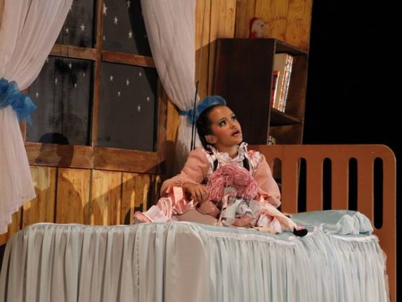Salamini, de apenas 10 anos, dá vida à personagem Sofia na peça “Fantástica Fábrica de Natal” e chama a atenção dos