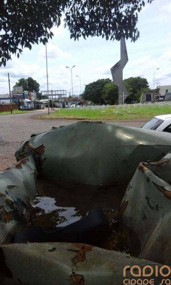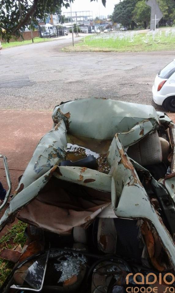 Segundo eles, por vários dias esse carro está no local, e como o teto está a afundado águas da chuva acabam se