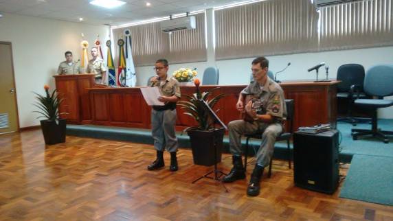 Gabriel representou todos seus colegas cantando o Hino Nacional Brasileiro. El foi acompanhado pelo Sgt Márcio Dege.