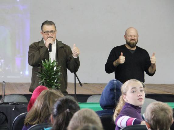 Na oportunidade, Tiago chamou alguns alunos ao palco para participarem da apresentação