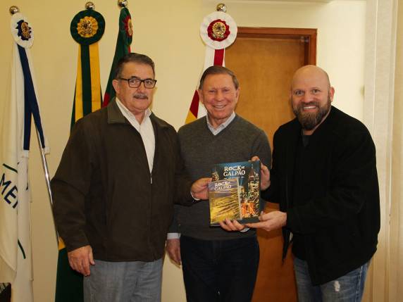 Galpão nas Missões ao prefeito municipal, Olívio José Casali. O prefeito Casali agradeceu a visita e parabenizou o músico pelo seu trabalho e pela bela
