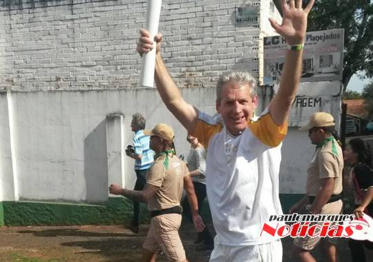 Luis Pereira, o "Nena", foi um dos condutores do símbolo dos Jogos na capital missioneira. À tarde, a chama passa por Ijuí e Cruz Alta.