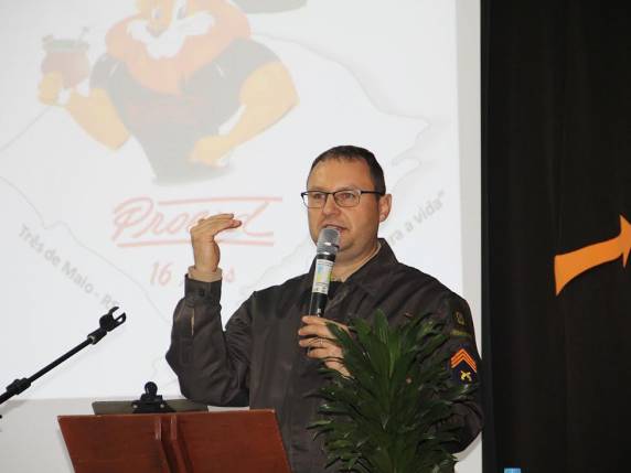 da palavra, o comandante da Brigada Militar de Três de Maio, Paulo Ricardo Pinto Rogério falou do desafio da corporação no combate às drogas no