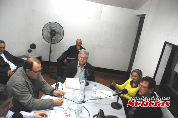 primeiro debate da corrida eleitoral na manhã deste sábado (3) na Rádio Colonial. Beto Marasca (PMDB), João Edécio Graef (PTB) e Rudy Cornélius