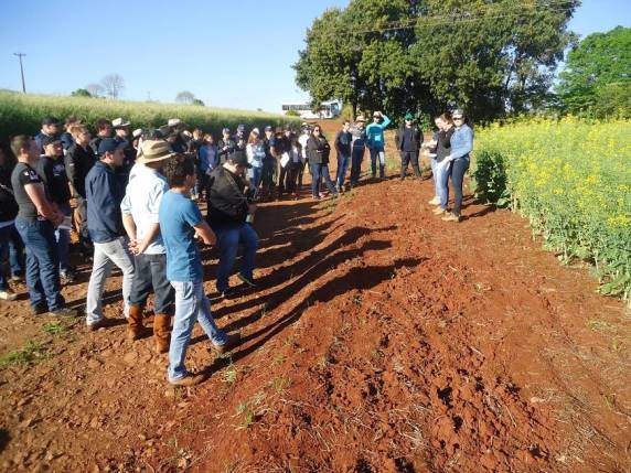 culturas de aveia, canola, linho e trigo. “No sábado, dia 10, uma das atividades da disciplina foi a visita a alguns destes experimentos. Visitamos dois experimentos de Canola,