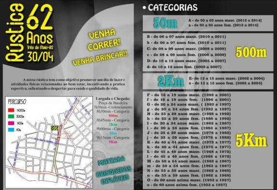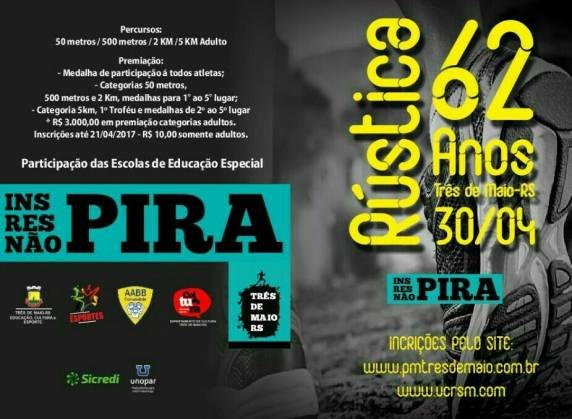 Será dia 30 de abril a Rústica comemorativa aos 62 anos do município de Três de Maio.