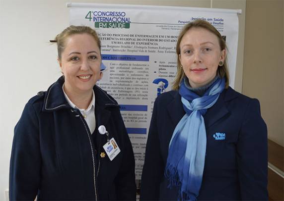 Enfermeiras, do Hospital Vida & Saúde, Elisangela Rodrigues e a Carine Brischke, apresentaram trabalho durante o 4º Congresso Internacional em Saúde: