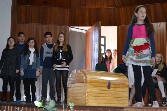 5º ano, por exemplo, fez um teatro com base na obra ‘O último Guardião’, da escritora Leia Cassol. Já o 7º ano optou pela obra