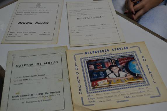 buscamos identificar como era a sala de aula, a dinâmica da aula, a didática que os professores usavam, os livros, os materiais didáticos e os boletins escolares.