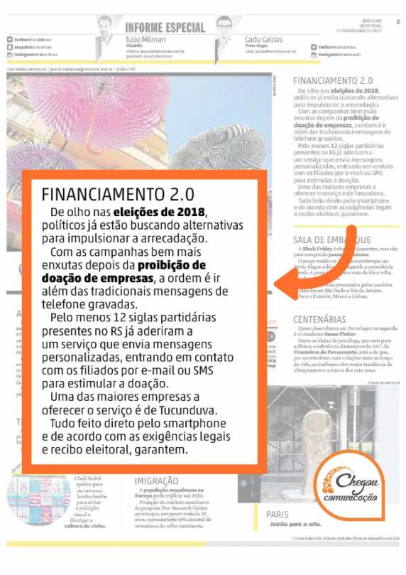 parceria com o município de Horizontina, vem sendo destaque na mídia nacional, em jornais tradicionais e digitais de Porto Alegre, São Paulo, Curitiba, dentre outros,