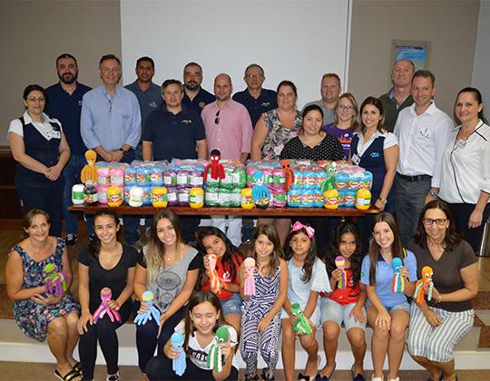 durante a internação dos bebês. Ficamos felizes de receber toda essa doação, pois assim, garantimos polvos para todo o ano, já que cada