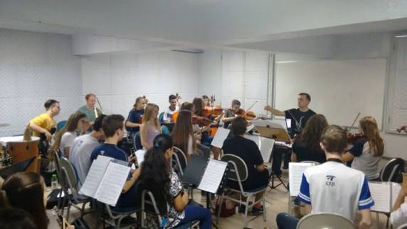 A Orquestra Jovem CFJL/FAHOR é regida pelo professor Cleverton