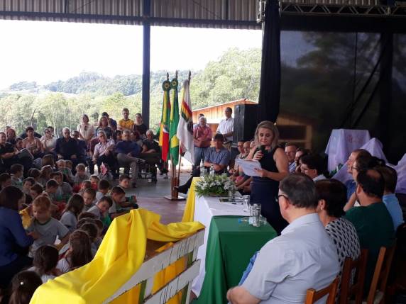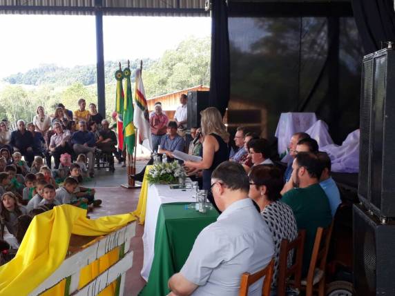 O ato contou com a presença do prefeito Altair Copatto, da vice-prefeita Eliane Fischer, da secretária municipal da Educação, Tânia George, do