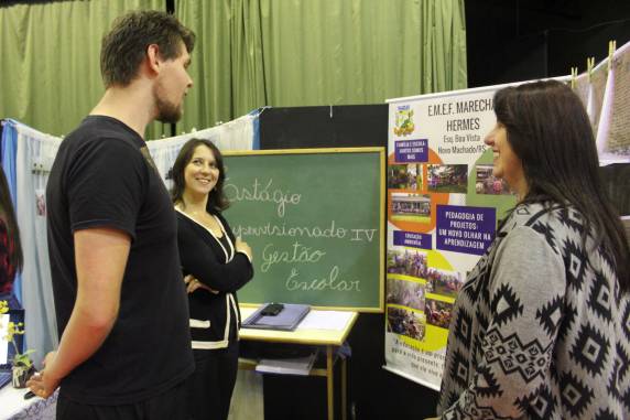 diretora Mara Weber e a professora Jussara Rossato Clauss, da EMEF Marechal Hermes, visitaram o Seminário de Estágios. Para elas, essa reorganização ajudou a