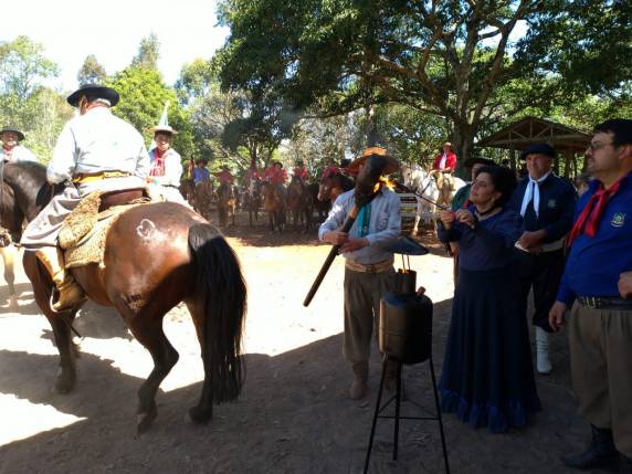 benção aos cavalarianos antes da partida para seus respectivos Centros de Tradições Gaúchas.