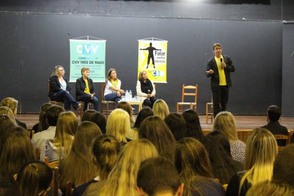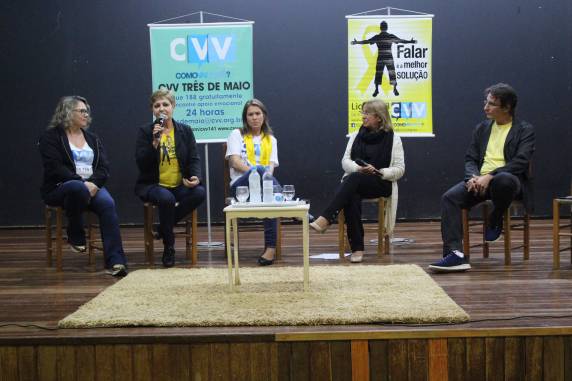 Claudia Demo e das voluntárias Marilene Nardes e Leoni Eckert, mostraram como é o trabalho desenvolvido pelo CVV.