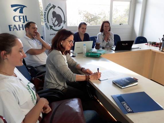 A assinatura do convênio foi realizada na presença do diretor da FAHOR, Sedelmo Desbessel, do vice-diretor Marcelo Blume, de coordenadores de cursos de Engenharia Mecânica, Engenharia Ambiental e Engenharia de Controle e Automação da FAHOR e também por voluntários da ONG Terra Verde, tendo Juliana Meller, como representante.