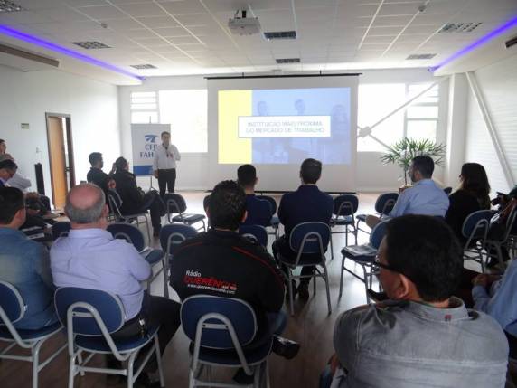 FAHOR 2019, com a presença de representantes da imprensa local e regional, representantes dos estudantes e dos colaboradores. O lançamento aconteceu no auditório do