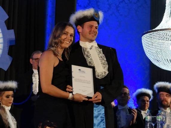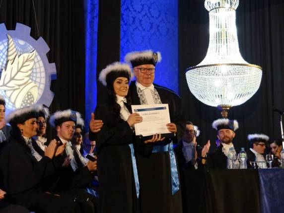 Entre os muitos momentos emocionantes, estiveram as premiações aos acadêmicos que tiveram excelente desempenho durante a graduação. Para as estudantes que tiveram a melhor média no transcorrer do curso, incluindo o Trabalho de Conclusão de Curso e Estágio, o Diretor da FAHOR, professor Sedelmo Desbessel, realizou a entrega de uma Láurea Acadêmica e uma bolsa de estudos na FAHOR, para Curso de Pós-graduação. A Economista Suyâne Letícia Bach Rosa de Moura e a Engenheira de Produção Jaqueline Weschenfelder receberam as Láureas.