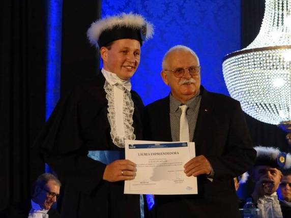 A última premiação da Solenidade foi entregue ao Engenheiro de Produção Luís Felipe Müller, pelo seu espírito empreendedor, com a empresa Rústico São José. A Láurea Empreendedora foi entregue pelo Prefeito de Horizontina, Antônio Otacílio Lajús, pela parceria entre Administração Municipal e FAHOR no Horizonte Ambiente Empreendedor, a incubadora tecnológica.