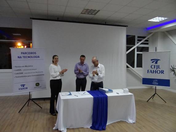 Durante a Aula Inaugural, CFJL/FAHOR e John Deere assinaram um termo de cooperação, que define as atribuições de cada parte envolvida. Os alunos também assinaram um termo de compromisso com as instituições. Para finalizar, os estudantes foram acompanhados pelos professores do curso, para conhecerem os laboratórios e salas onde acontecem as aulas, no Campus Arnoldo Schneider.