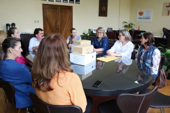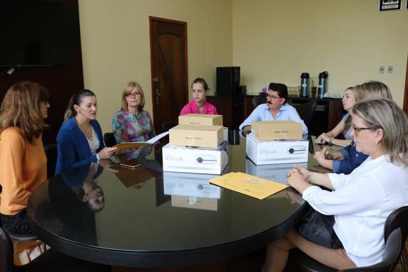 Na tarde da última quinta-feira, 13 de junho, o prefeito municipal Altair Copatti recebeu em seu gabinete a Secretária Municipal de Educação, Tânia Georgi e diretoras das escolas municipais para entrega oficial de novos equipamentos para as escolas.