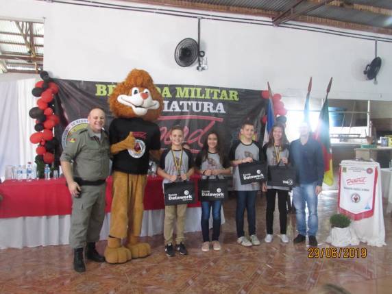 Nesta oportunidade também foi sorteado pela DATAWORK de Três de Maio, 4 bolsas 100% gratuitas para os alunos do PROERD, valorizando ainda mais o programa desenvolvido pela Brigada Militar.