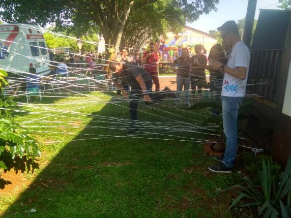 A Teia da Cidadania foi instalada no Parque de Exposições de Santo Cristo, pelos acadêmicos do curso. “Durante a tarde, as atividades foram intensas. Tivemos a participação de crianças de 5 anos até adultos de 50 anos. Até o Homem Aranha e o Máscara se arriscaram no nosso desafio. Da mesma forma, os integrantes da Comissão da Fenasoja 2020 entraram na brincadeira e se divertiram conosco”, destaca a coordenadora do Direito Setrem, Danielli Scarantti.