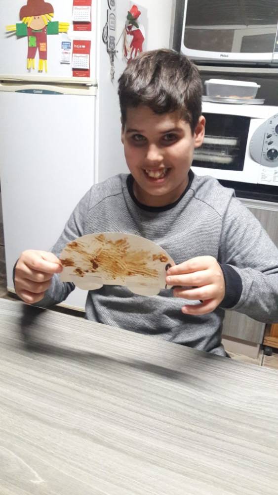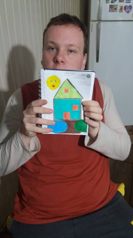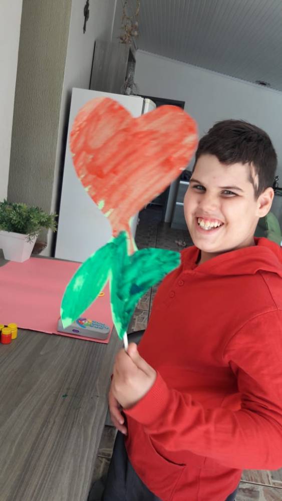 Eduardo estuda na turma do Ensino Fundamental ciclo I, com a professora Daniele Regina Decker. Segundo a mãe Janete, alguns exercícios o filho não aceita fazer. Então, ela realiza da maneira que ele gosta e envia à professora. “Ele está gostando, mas sente saudade dos professores e colegas. O Eduardo ainda não entendeu que não pode sair de casa, pois tinha uma vida bem regrada, com horários e rotinas, e agora só em casa, então às vezes se estressa. As atividades escolares estão ajudando bastante ele a interagir. Eu mostro os vídeos dos outros colegas e professores, e ele adora! Ele tem exercícios de educação física, com o professor Rafael Malakowski, e os trabalhinhos da professora Daniele, com pintura, leitura, desenho, assistir vídeos, e as aulas de música do professor Fábio Diniz Ribeiro. Então, ele ama, e como adora música, as aulas são bem interessantes para ele”, finaliza.