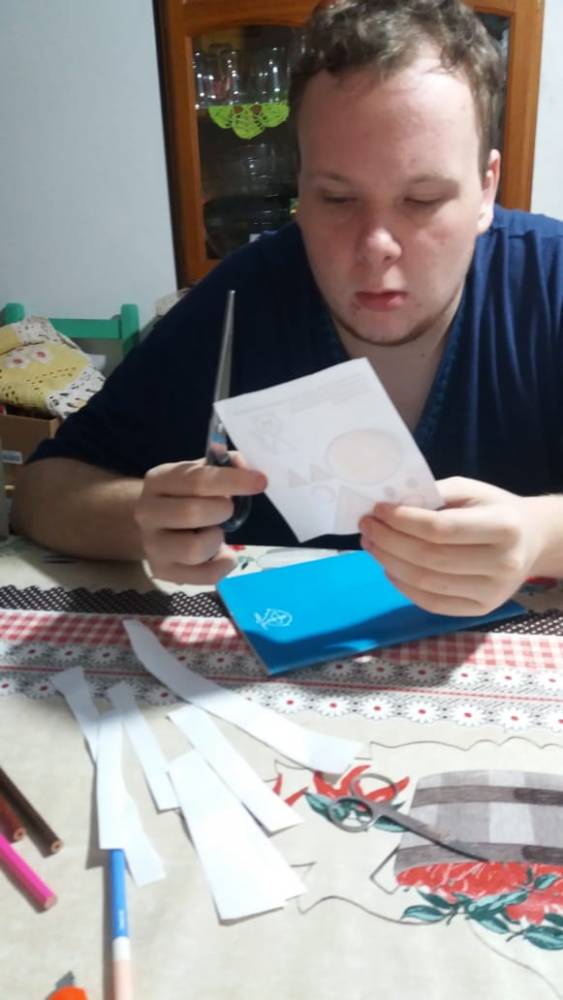 A professora conta que, para o primeiro vídeo que gravou, ficou emocionada, relembrando dos alunos e da escola. E, muito mais, quando os pais começaram a enviar os registros dos trabalhos. “Procuro fazer atividades diversas e que as famílias consigam ajudar os alunos a realizá-las. Os meus alunos são de Educação Infantil e Séries Iniciais. Então as atividades são de recorte, colagem, reconhecimento do nome, letras, número e cores, ou seja, que proporcionam o desenvolvimento da coordenação motora, motricidade, memória e raciocínio lógico. E como eles estão incluídos em escola comum, sei que eles ainda têm atividades da outra escola.”