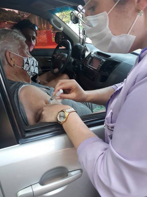 Na oportunidade, Corso conversou com alguns idosos que estavam nos veículos e presenciou a imunização da senhora Olga Beckert, de 102 anos, que destacou que ficou muito feliz de receber uma dose da vacina.