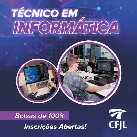 O curso Técnico em Informática do CFJL tem a duração de 2 anos e prepara os estudantes para atuação na área de Tecnologia da Informação, hoje, considerada umas das mais promissoras do mundo. Entre os diferenciais do curso também está a forte relação com o mundo do trabalho e a alta taxa de empregabilidade, por meio da parceria com empresas.