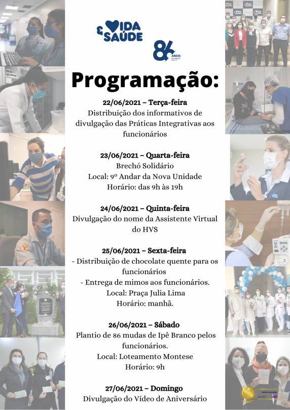 A semana de aniversário do Vida & Saúde finaliza no dia 27 de junho, domingo, dia do aniversário de 86 anos do Hospital, com a divulgação de um vídeo especial!