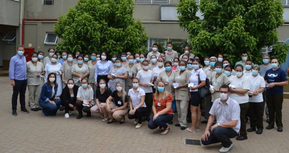 Cerca de 90 profissionais foram homenageados, participando de um momento de agradecimento e celebração promovido pelos setores de Recursos Humanos e Assessoria de Comunicação, com o apoio do Serviço de Nutrição e Dietética. A iniciativa foi dividida em dois momentos: na Unidade Dom Bosco e na sede do Hospital Vida & Saúde.