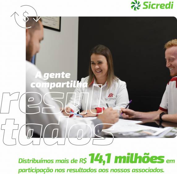 Neste ano, a Sicredi Noroeste RS distribuiu mais de R$ 14,1 milhões de resultados entre os 49 mil associados. Hoje será creditado R$11,2 milhões na conta dos nossos associados, sendo creditados 50% do valor em Cota Capital e 50% em uma aplicação financeira. Quanto mais você usa as nossas soluções, mais você ganha, mais a nossa cooperativa cresce e mais desenvolvimento a gente gera para a economia local. Aqui no Sicredi, o seu dinheiro rende um mundo melhor. Porque a nossa parceria é assim: quanto mais você usa as nossas soluções, mais você ganha, mais a nossa cooperativa cresce, e mais desenvolvimento a gente gera para a economia local.