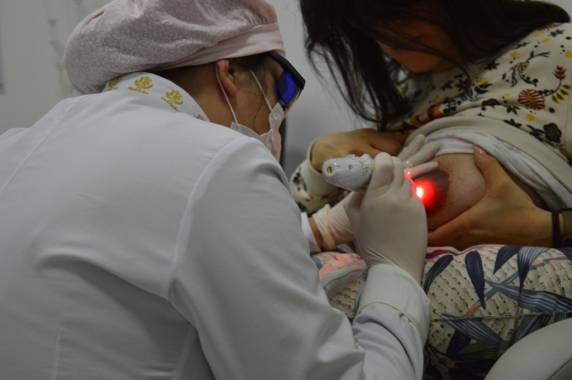 “Desde março estamos oferecendo esta importante alternativa para as mamães. O processo de amamentação, por vezes, traz desconforto, por isso buscamos uma alternativa que facilite tanto a vida das mães, como a dos bebês. A Laserterapia auxilia no tratamento de fissuras mamárias, ingurgitamento e analgesia. É aplicado mediante avaliação, correção da pega e posicionamento da mãe e do bebê. O tratamento é indolor e consiste em rápidas aplicações”, explica a nutricionista Angélica Samrsla, que é responsável pelo Banco de Leite e a profissional habilitada a realizar a aplicação do laser nas mamães.