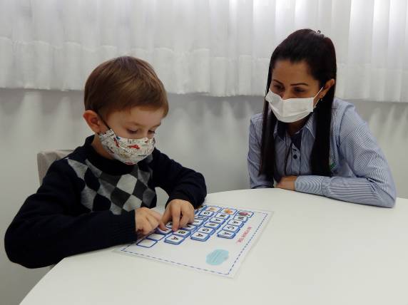 O paciente Arthur Filipe Vieira Ludwig, de 6 anos, é um dos atendidos pela Marciane. Ele teve avanços significativos desde que começou os atendimentos. “Arthur tinha dificuldade em vir para a escola, chorava muito, não tinha conhecimento das letras e números e dificuldade na integração com os colegas. Aos poucos e com muito trabalho entre escola e família, ele foi se familiarizando com a nova rotina e com a aprendizagem. Hoje, o Arthur apresenta uma grande e significativa mudança em sua vida escolar. Está em plena aprendizagem e desenvolvimento. Também está alfabetizado e gosta muito de vir para a escola, ou seja, está adaptado à rotina escolar”, comenta Marciane.