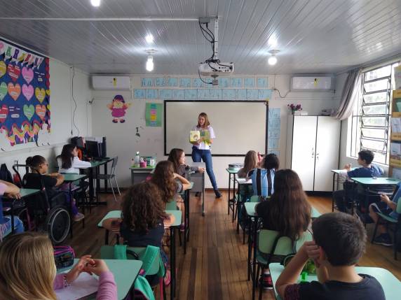 Nos dias 5, 6 e 7 de julho, o Sicoob, por meio do Instituto Sicoob, realizou contação de história do livro “Caio achou uma moedinha”, para os alunos do PROERD em nove turmas de escolas municipais e estaduais em Três de Maio (RS). No total, 195 alunos participaram da ação.