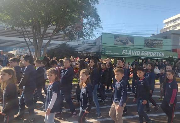O desfile, que contou com a particição das escolas das redes municipal, privadas e comunitárias, partiu da Praça da Igreja Matriz Católica e terminou na rótula central Willy Becker.