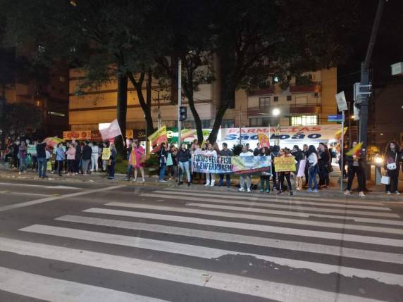 Na noite desta quarta-feira (21), enfermeiros técnicos e auxiliares realizaram um manifesto pedindo o pagamento do piso salarial da categoria. O ato, que é unificado em todo o país, aconteceu na praça do Teixeirinha, na Avenida Brasil.