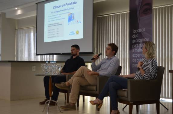 Apresentado pelos urologistas Leda Reschke, Matheus Knack e Robson Paveglio, o encontro abordou fatores de risco sobre o câncer de próstata, tratamentos disponíveis, a importância da prevenção e do cuidado com a saúde. Quem acompanhou a palestra pôde tirar dúvidas e saber mais sobre o trabalho dos urologistas. “A ideia deste encontro foi promover um bate-papo, e alertar os homens sobre a importância do cuidado com a saúde”, destacou o médico Robson Paveglio. A atividade foi encerrada com um lanche especial e a distribuição de chás com mensagem motivacional incentivando o autocuidado.