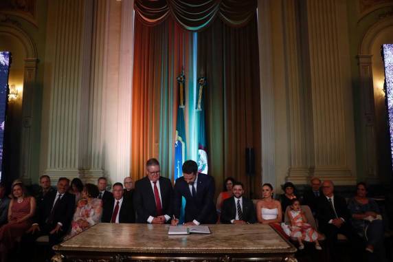 Leite celebrou o apoio que teve dos deputados para conduzir as reformas estruturais que permitiram o ajuste das contas públicas, destacou o pagamento de dívidas históricas, a equalização da dívida com a União por meio do Regime de Recuperação Fiscal e os investimentos de R$ 6 bilhões no programa Avançar.