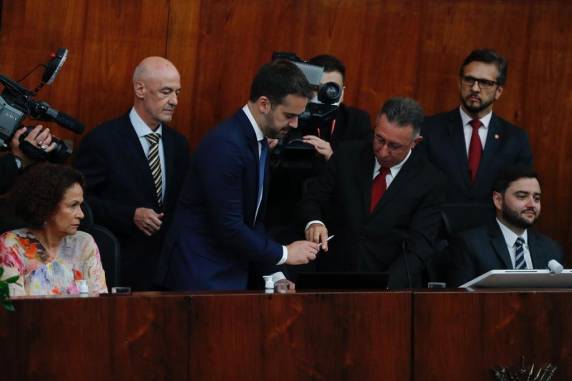 — O evento que realizamos hoje enaltece, revigora e consolida o republicanismo, a civilidade e o respeito à democracia. Hoje estamos promovendo a celebração da liberdade, do reconhecimento mútuo, do entendimento de que o oponente não é um inimigo a ser debelado — afirmou Valdeci, ressaltando a honra e o orgulho em ter dado posse ao primeiro governador reeleito do Estado.