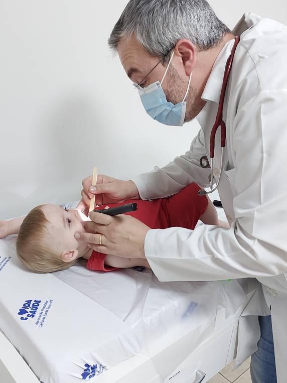 “Pude tirar todas as dúvidas com o Doutor! Aqui viemos com mais tempo e podemos esclarecer as preocupações”, conta Roselaine da Silveira, mãe do pequeno e sorridente Ravy Luca, de 01 ano. Em consulta de retorno, a mãe relata a tranquilidade obtida após o acompanhamento no Ambulatório.