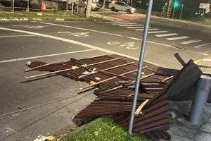 As fortes rajadas de vento fizeram telhas voarem no bairro Menino Deus, conforme relato de moradora da região. E no bairro Azenha, há registros de um tapume caído na Avenida Ipiranga, esquina com a Avenida da Azenha.