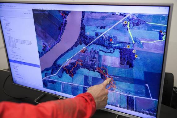 No final da escala, o Corpo de Bombeiros se reúne em um centro de comando improvisado na Secretaria Municipal da Educação. Em uma tela, o mapa satélite vai ganhando a marcação do que foi achado em cada local. A partir daí, comenta o major Gabriel Greinert, é determinado o reinício da incansável procura, em novos locais a serem batidos.