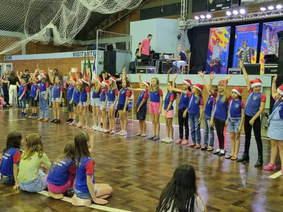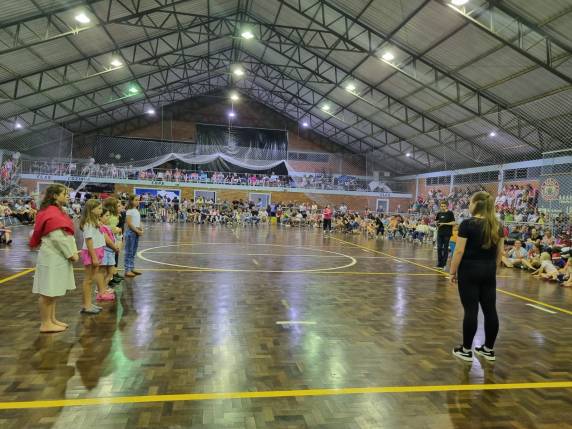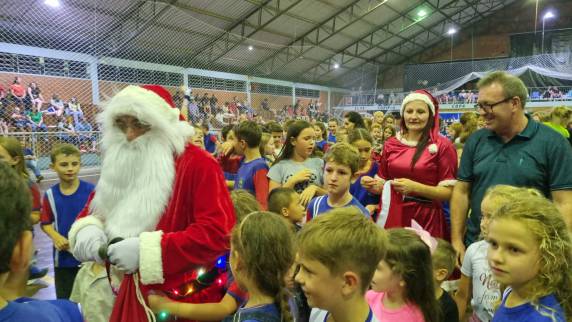 Alunos da Escola Municipal Rui Barbosa, fizeram uma brilhante apresentação para dar início da programação da noite, com o Teatro Mágico, em seguida o Grupo Teatral Os Peraltas se apresentaram, e por fim, o Papai Noel chegou para receber a chave da cidade das mãos do Prefeito Gilberto Hammes, e distribuir presentes para as crianças.
