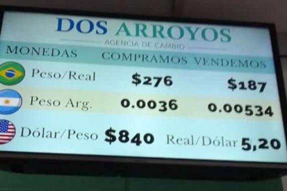 O valor equivalente em reais, entretanto, depende do câmbio local, onde é possível encontrar variações entre 160 pesos e 200 pesos para cada R$ 1, o que significa variação de 25% entre o mais barato e o mais caro. Ainda assim, do lado argentino há relatos de escassez de moeda, o que faz com que os consumidores desprevenidos se sujeitem às cotações praticadas por cada estabelecimento comercial.