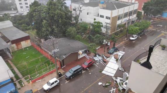 Em relação aos prédios públicos, uma unidade de saúde (ESF 1) e algumas escolas também tiveram danos parciais nos telhados. Prédios de empresas e de entidades também foram atingidos.
